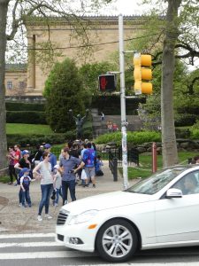 I had never seen the Rocky Film so this statue was something of a mystery to me. But, in short, I’ve now watched a clip from the first Rocky movie where the actor Sylvester Stallone ends a morning run by jogging up the steps of the Philadelphia Museum of Art. So, this is an important site for fans of the movie.
