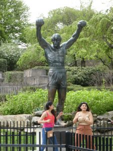 So, the city authorities shoved the statue out at the Spectrum stadium in southern Philadelphia, but it was starting to become an iconic symbol of the city because it represented the triumph of the underdog. After some more arguing it was decided that a compromise site would be found, so the statue is now located near to the base of the steps, but it doesn’t impact on the view of the museum.