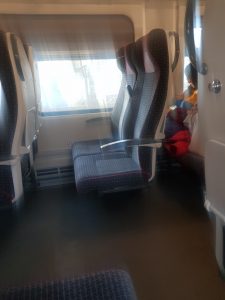Not a very good photo, but the carriage was clean and although it was busy, it wasn’t difficult to get a seat. There was power at every seat and the guard was friendly and helpful when she came through the train. The journey departed and arrived at every station at the timetabled time, all very smooth and efficient.