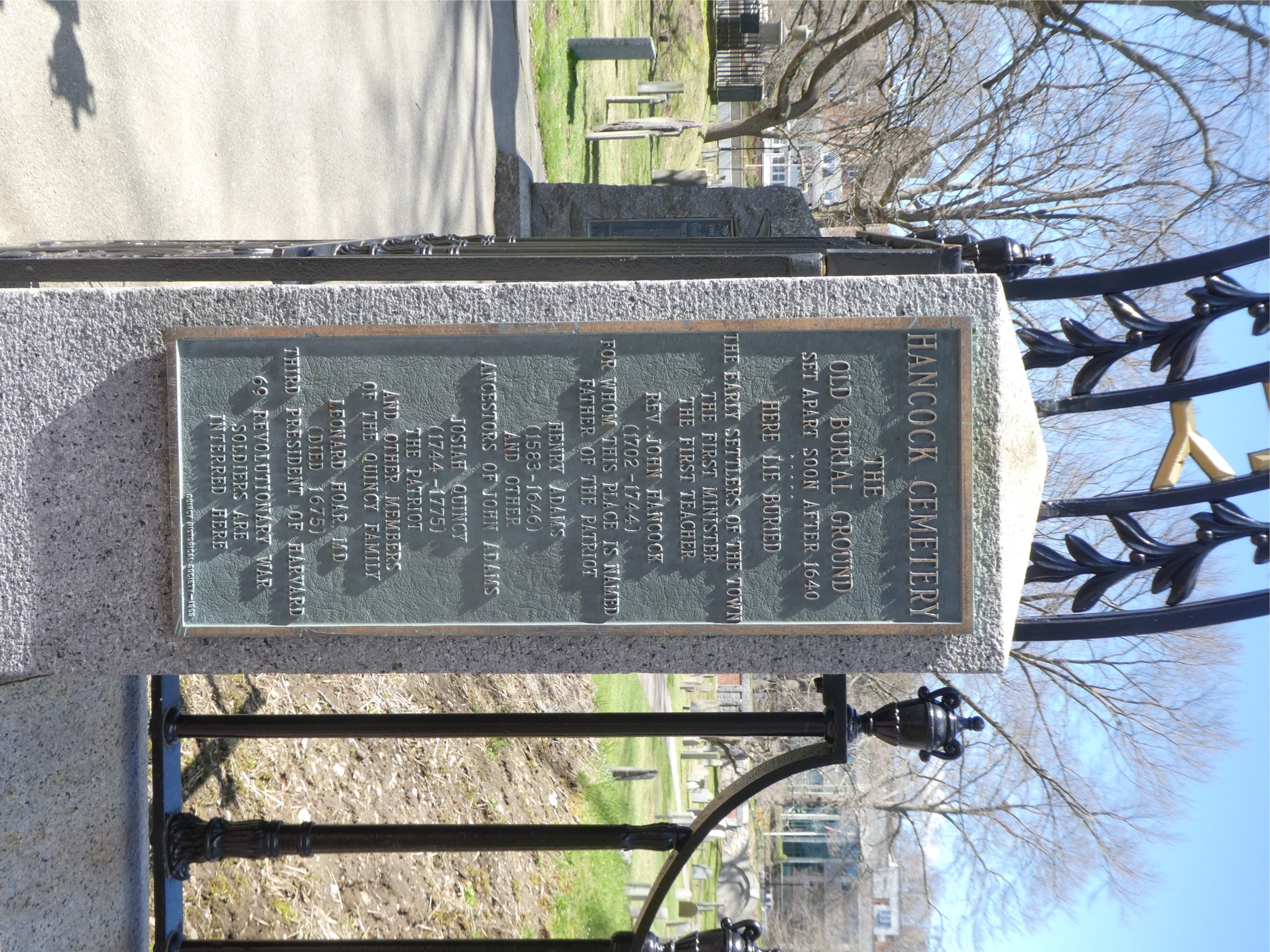 Hancock Cemetery is located in the centre of Quincy and the first burial here was in around 1640. The former Presidents John Adams and John Quincy Adams were also buried here, although they were later moved over the road to the United First Parish Church.