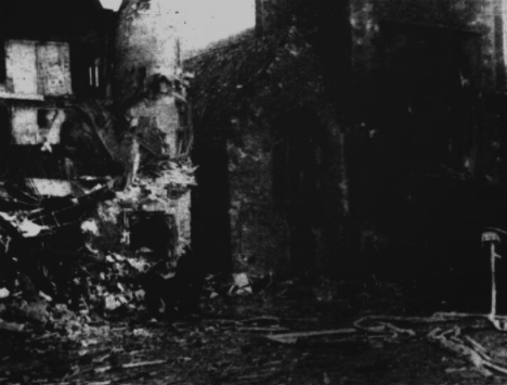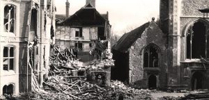 This isn’t a particularly clear image, but it shows the damage in front of the church and is what was used in the Reading Standard to report the incident. It’s actually a little odd, as the Reading Standard must have been operating with some censorship limitations as they had to explain that the bomb had hit a “Home Counties town”, but I think it’s fair to say that most people reading the Reading Standard would be aware which town it was, but perhaps they wanted that a secret kept from the Germans. Focusing on the positives in terms of the swift return to normal, the newspaper reported, still not naming the town: