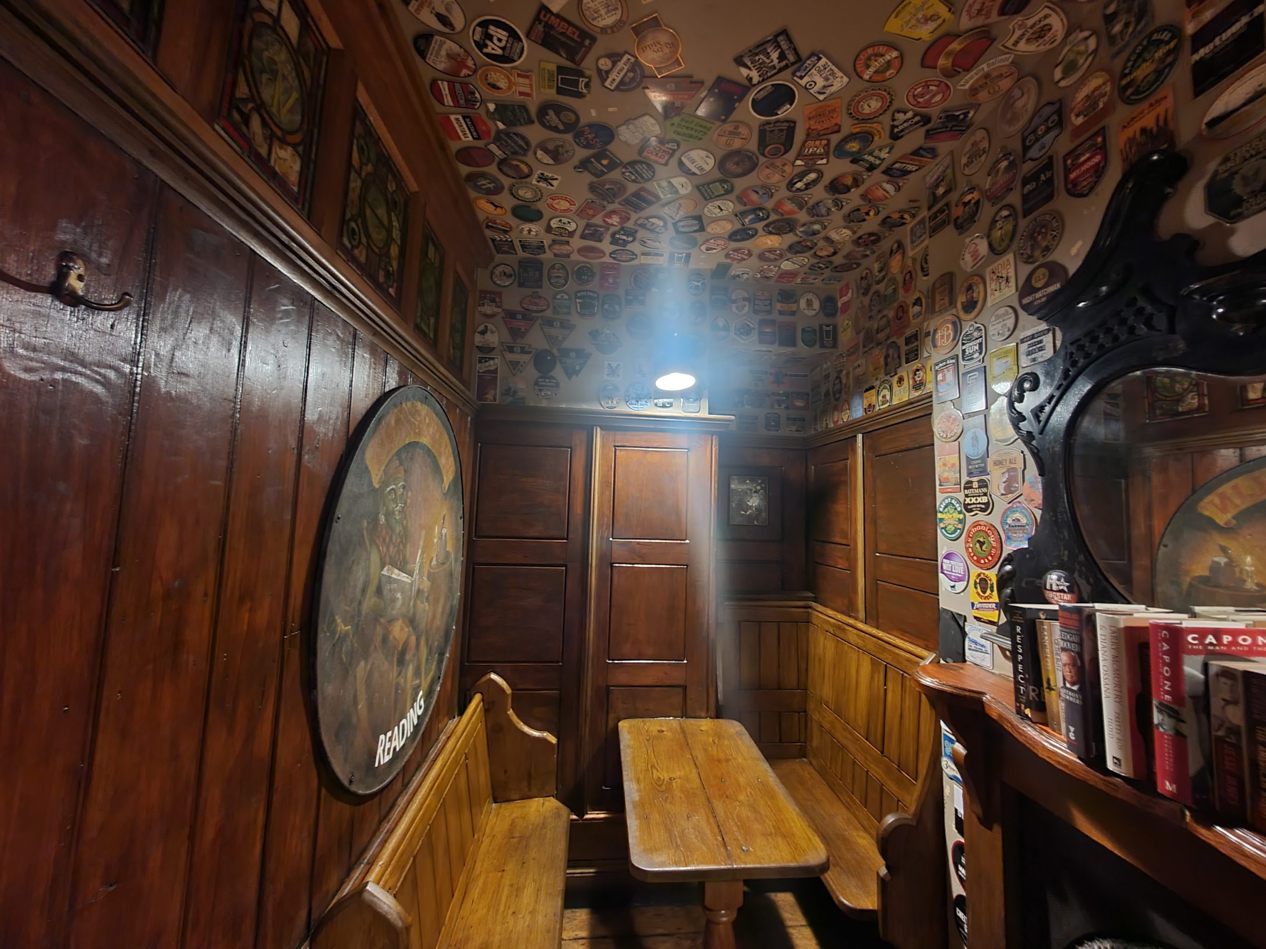 Now that’s quirky, I like it. Some interesting books on the shelf and some effort with the decoration on the ceiling in here as well. Absolutely no phone signal, but plenty of charm. The toilets at the back of the pub feel quite old-school and they require some slight manoeuvring around some beer barrels, but that all adds to the character.