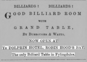 From the Whitby Gazette in 1888 and I imagine that the billiards table had been in the upper room. The lower room is what today houses the pub’s main bar and it was full when we visited.