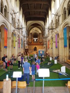 The golf course takes up the main part of the nave and the staff member mentioned to me that the seating had been taken out for a deep clean and so the space was easy to temporarily convert.