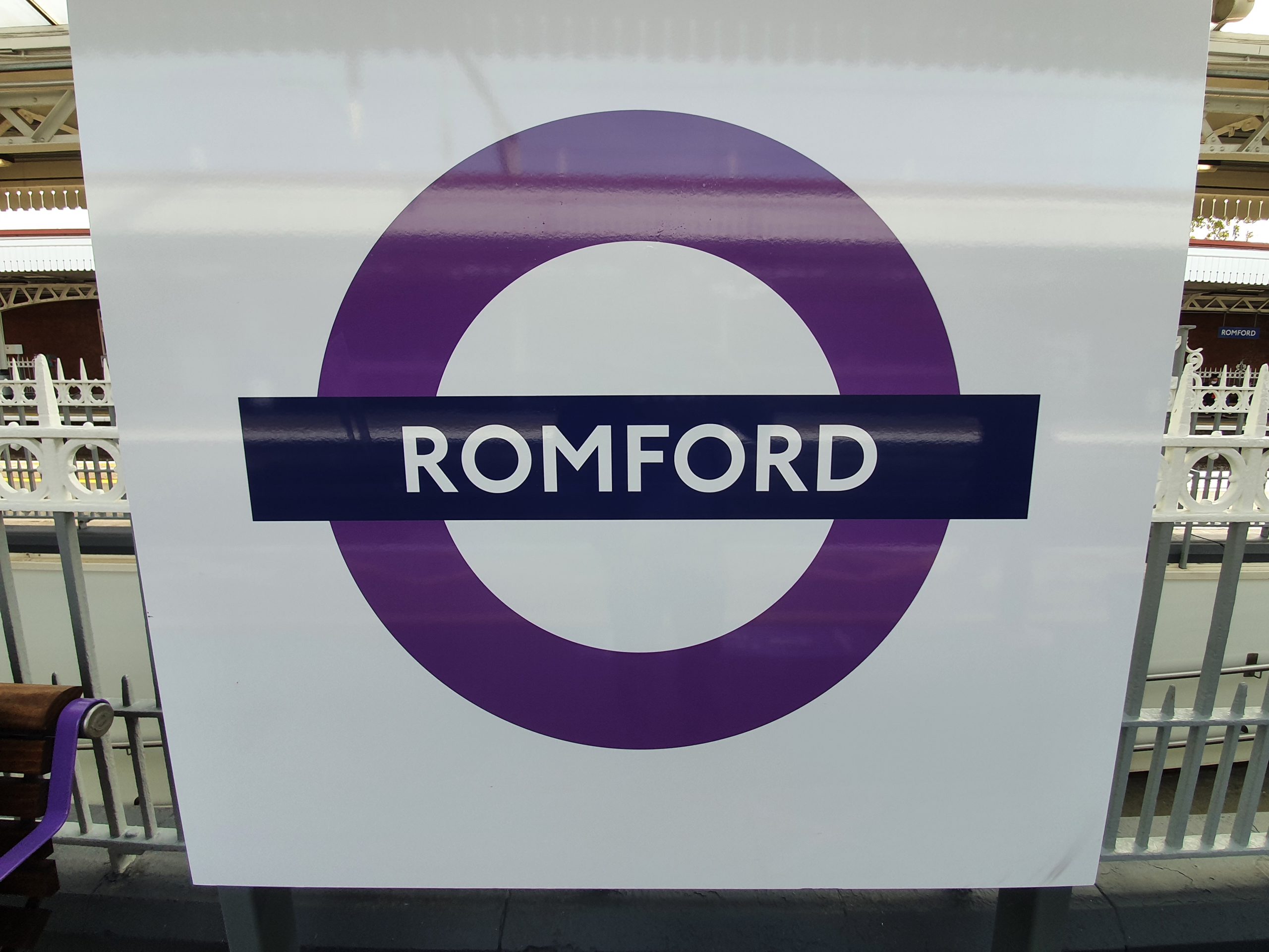 The Romford roundel, with the colours of the Elizabeth Line, or, as most people will probably keep calling it, Crossrail.