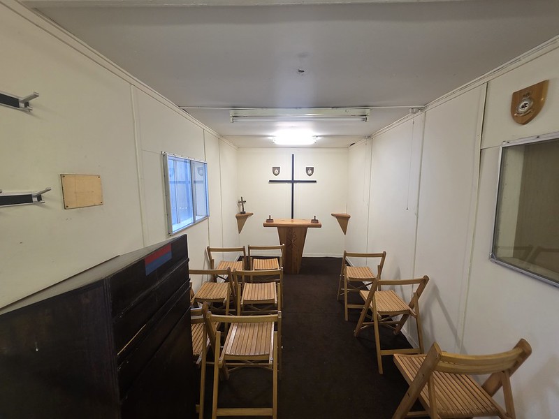 This is quite a powerful exhibit, it’s the chapel that was at RAF Stanley in the Falkland Islands. Initially a tent had been used as the chapel, but the General Engineering Flight converted this shipping container to create something more appropriate by adding a door and two windows.