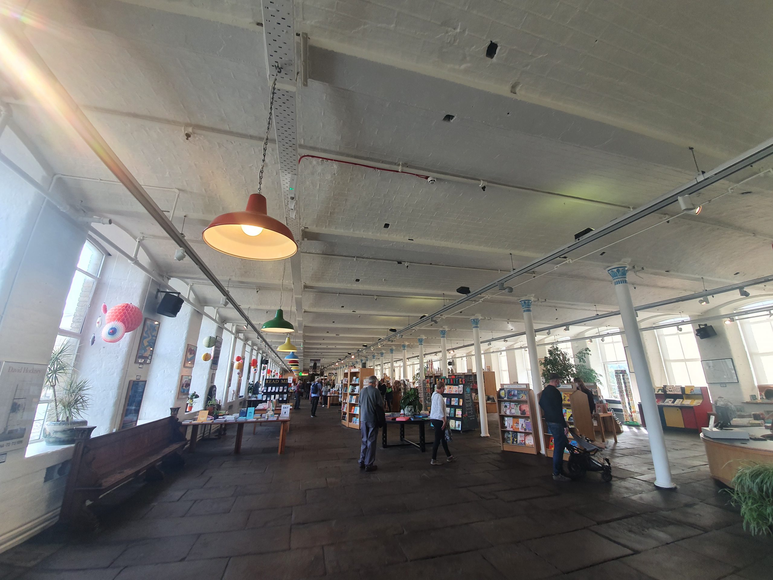 The mill building today is a combination of art gallery, antiques emporium, bookshops and other random stuff. The building remained in use as a mill until 1986, but the sheer amount of floor space and the falling price of imports meant that it became unviable as a business.