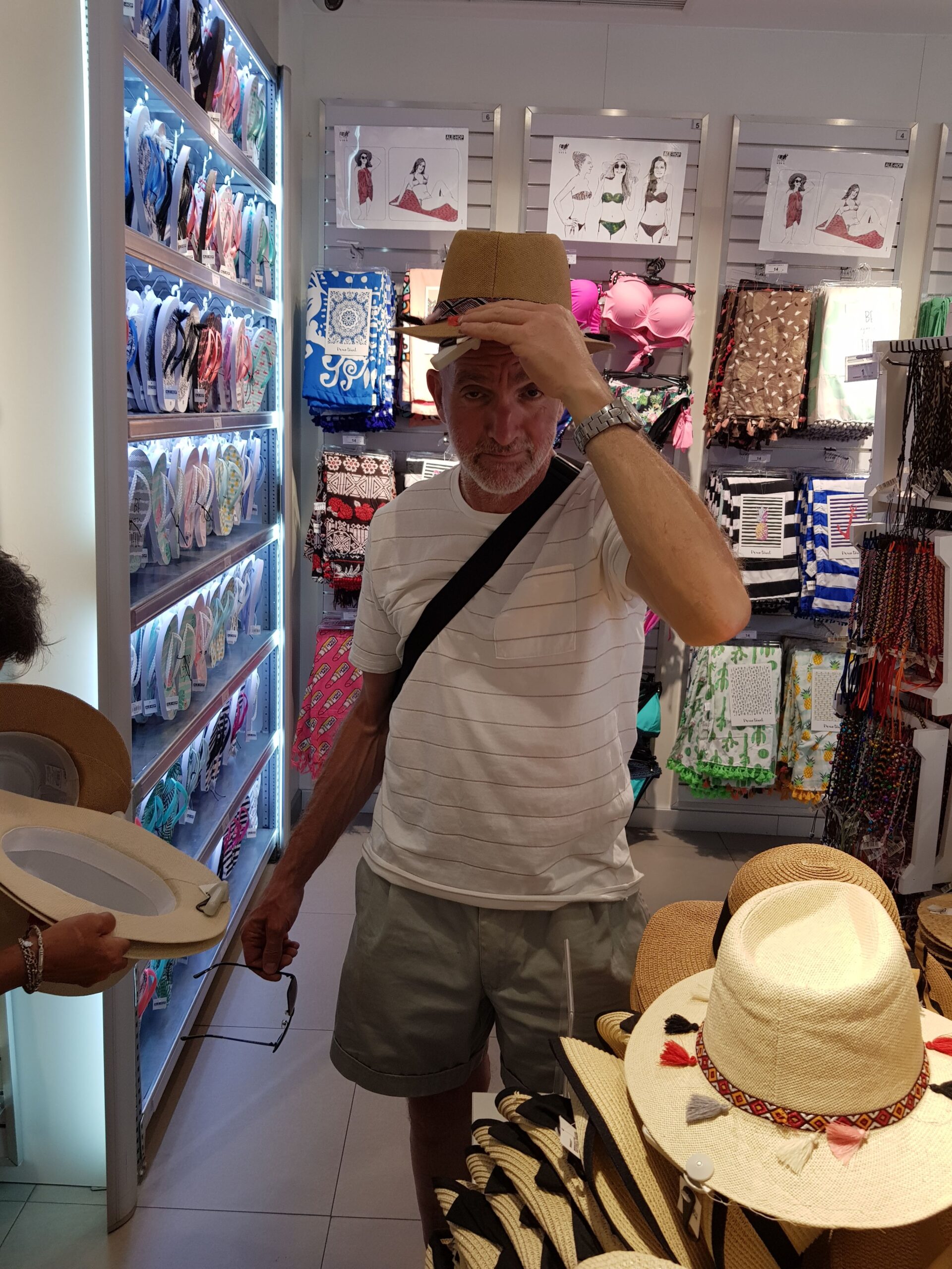 Bev helping with the hat purchase. This mainly involved her plonking hats which didn’t fit onto Clive’s head, whilst Clive reminded everyone that he had a big head.