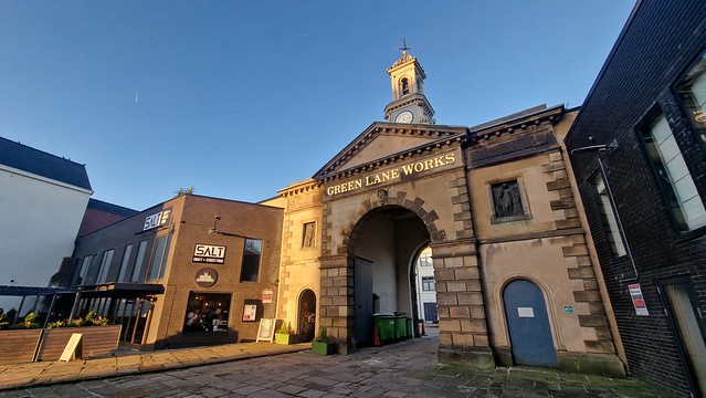 I’ve been to Salt’s brewery in the sunny town of Saltaire and this is their outpost in the Kelham Island area of Sheffield. Note the rather lovely gateway, although it’s hard to miss, which the brilliant Nikolaus Pevsner said was the “most spectacular survival of factory architecture in the city”.