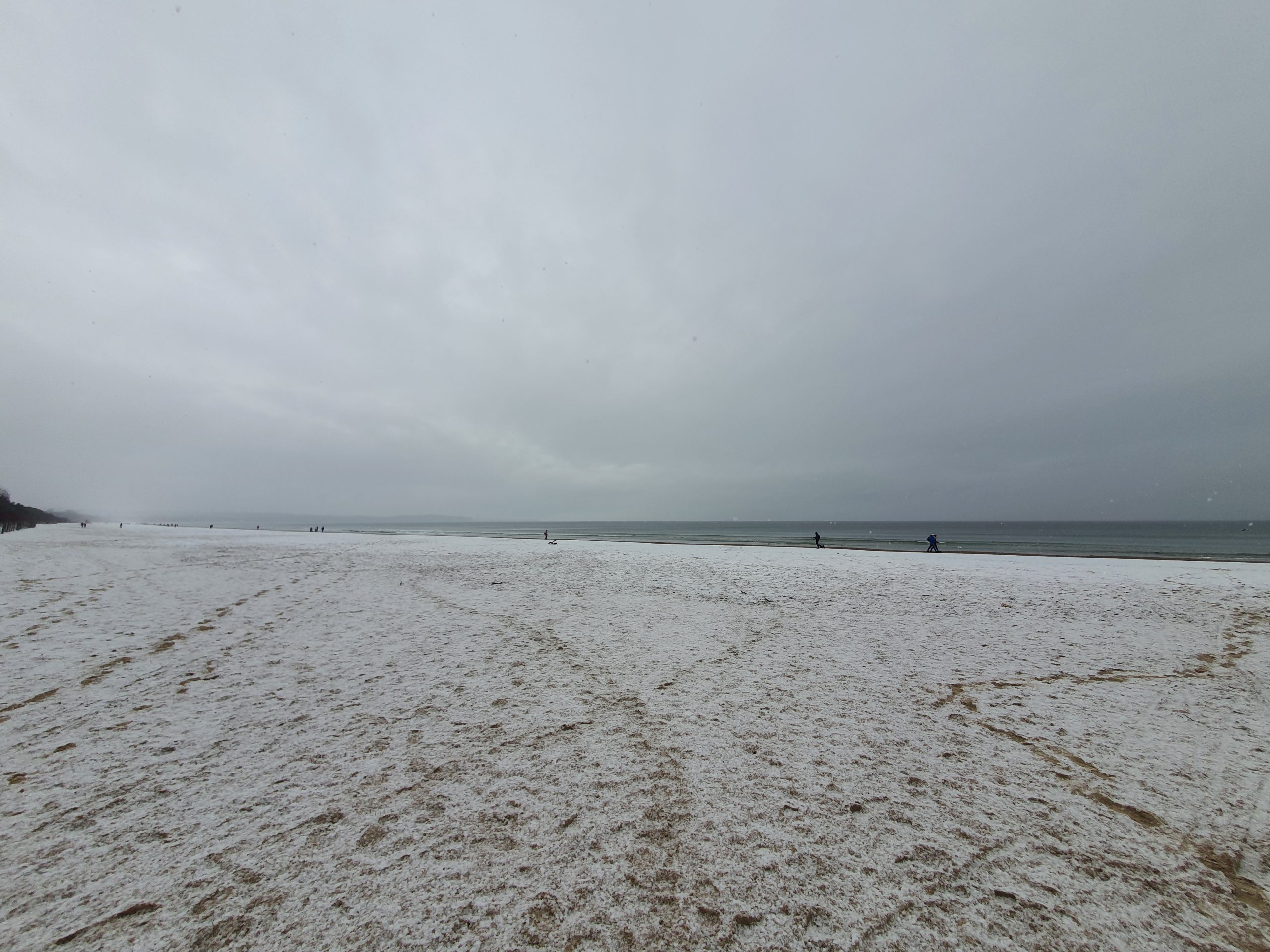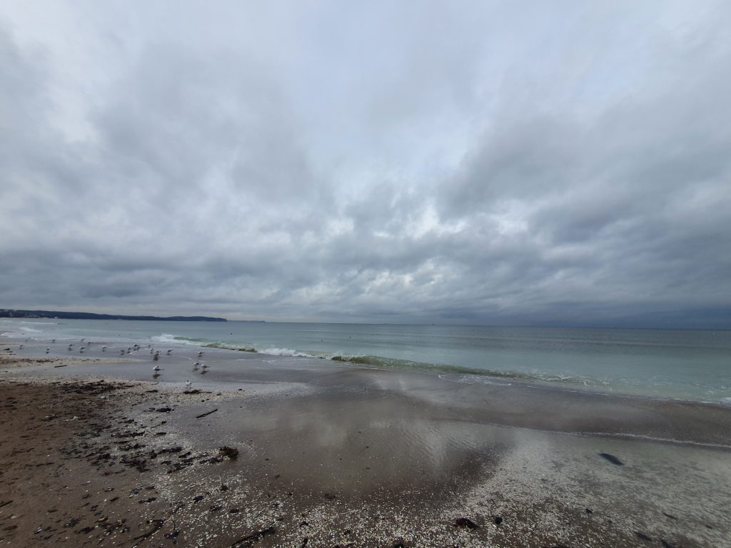 And the sea…. There seemed to be plenty of locals going for strolls and taking their dogs out for walks, it was quite a busy beach. It had just about stopped snowing by this point, but it remained relatively warm throughout.