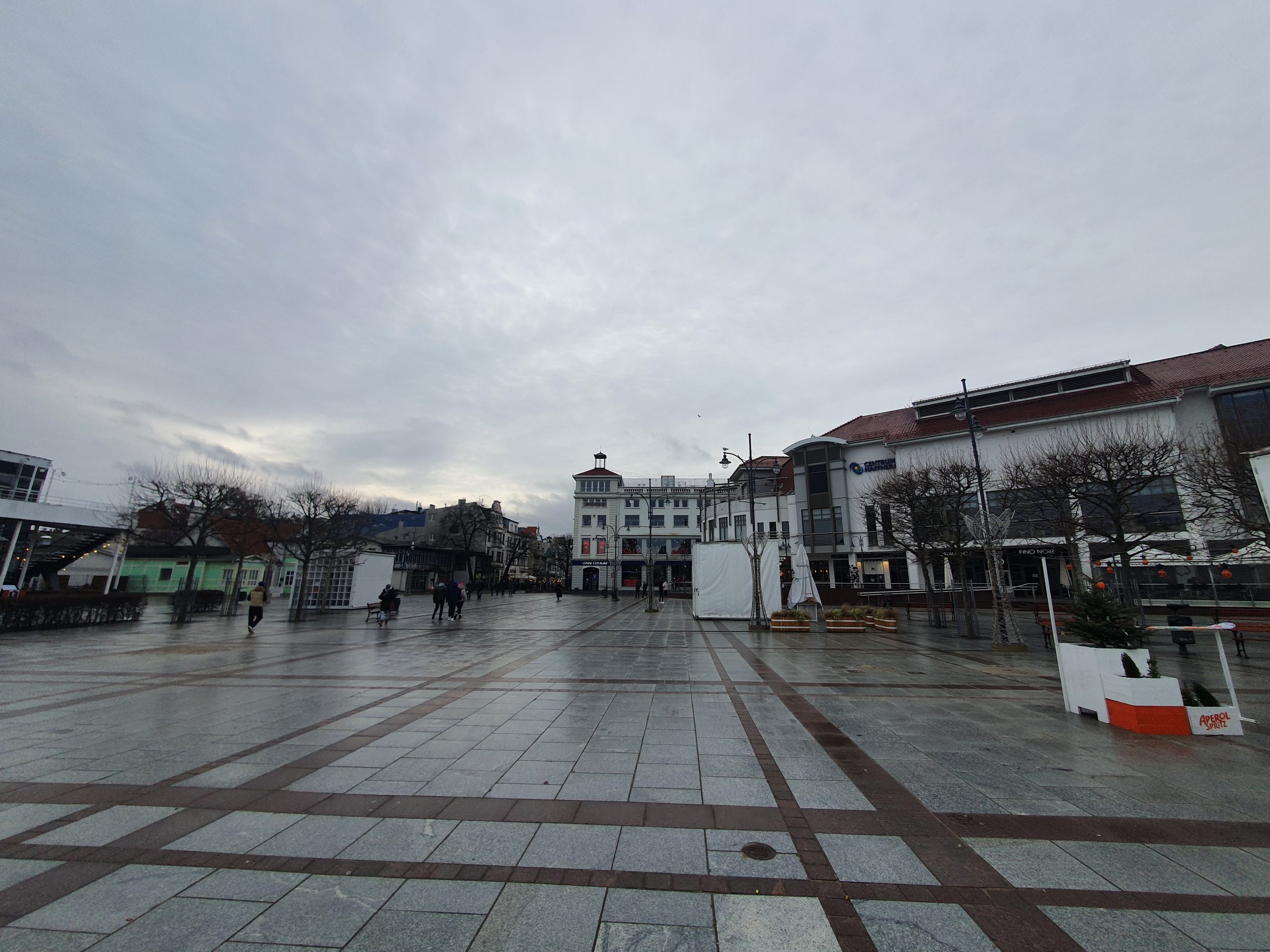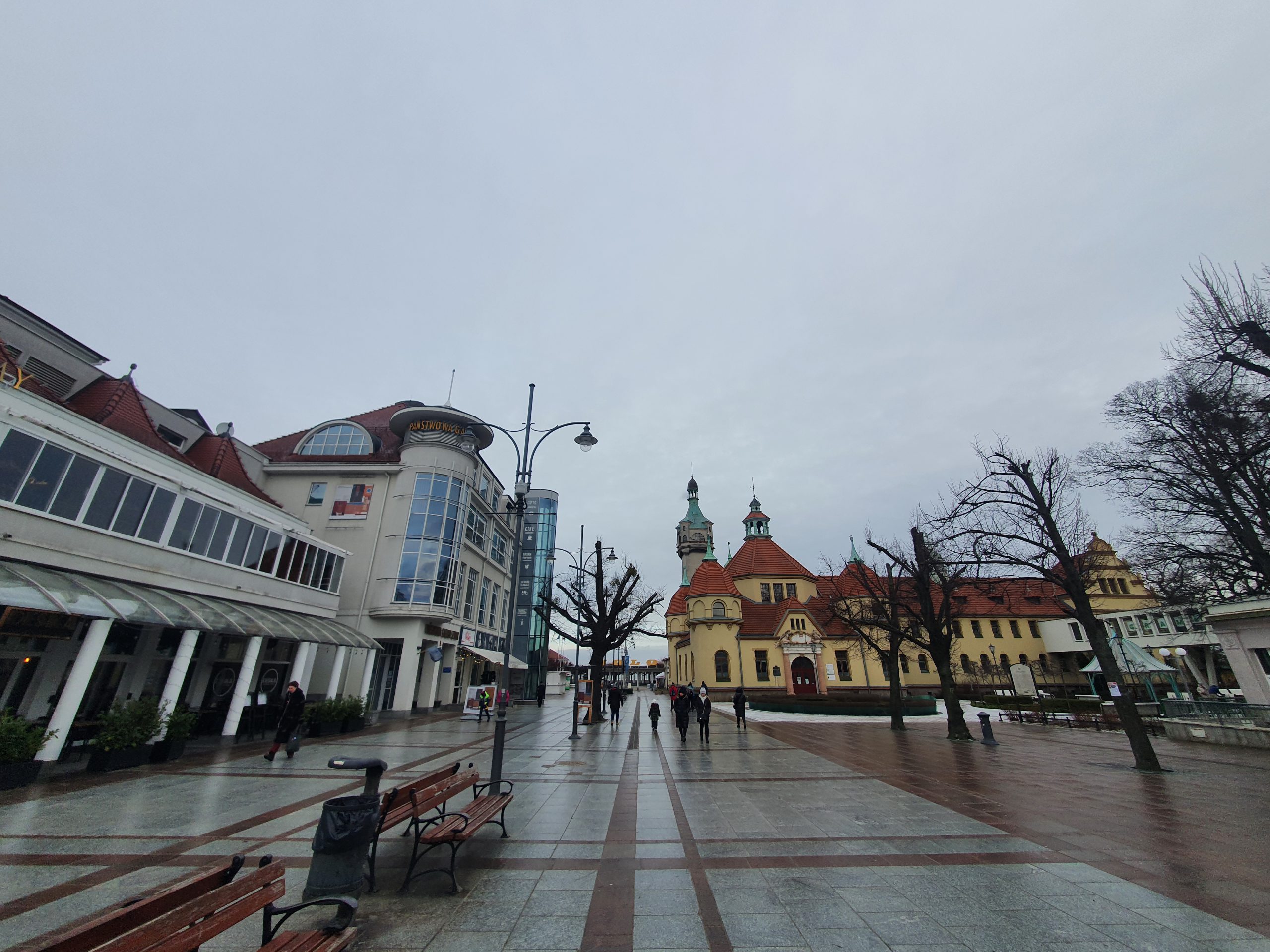 The main street of Sopot, mostly pedestrianised as the road goes underneath all of this.