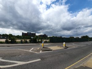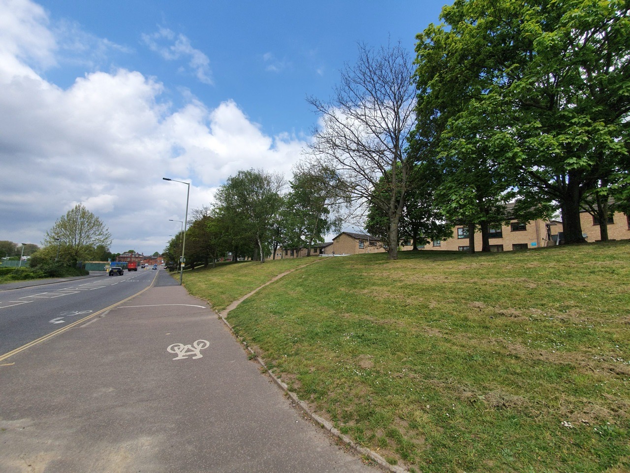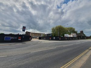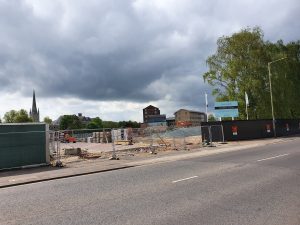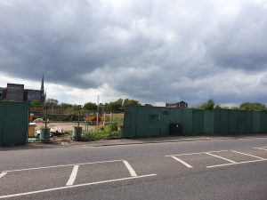More recently, this has been a light industrial area with an ugly building facing the road. It’s now a housing development being built by Hill.