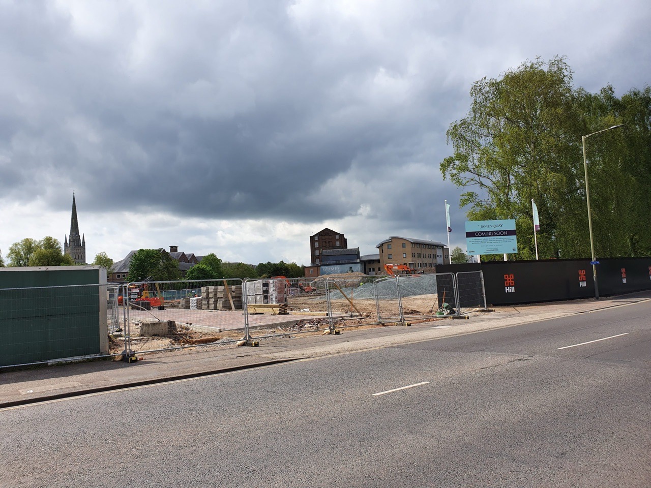 A few years ago they pulled down some council housing, which was in perfectly good nick, and then left the site vacant for years. It wasn’t a good look…. It’s part of the same Hill housing development which is now finally under construction and it’ll be known as St. James’s Quay.