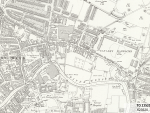 The barrack site again, it was built on the site of Hassett House at the end of the eighteenth century and was known as Cavalry Barracks and then Nelson Barracks.