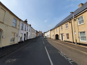 Cathedral Street leads from Prince of Wales Road to St. Faith’s Road and Horse Fair. It hasn’t changed much since the 1880s map, just the building of some houses which cover the empty space at the top-left side of the street.