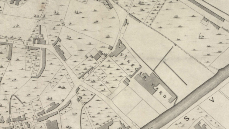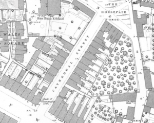 But, all of this development was relatively new at that time, as in this 1830s map it’s evident that Prince of Wales Road and Cathedral Street didn’t even exist. Prince of Wales Road was constructed to be a sweeping boulevard to the new railway station and Cathedral Street was laid out at the same time.