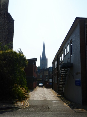 This small lane off of Fishergate goes down to the River Wensum and it separates the Church of Saint Edmund from what is today an NHS building, but was once a large sawmill site.