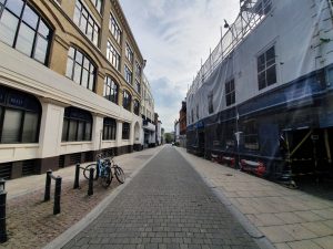 This is the Old Bank of England Court. The building to the right-hand side of the court is a former residential property built in the late seventeenth century, which is now used as offices. It is also where the offices of Edward Boardman were once located, a well-known (well, locally, I don’t think he was an international superstar in the nineteenth century) Norwich architect. The building to the left-hand side of the court is similar in once being residential, although was first built in the early eighteenth century.