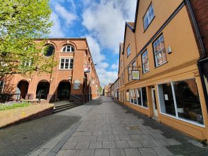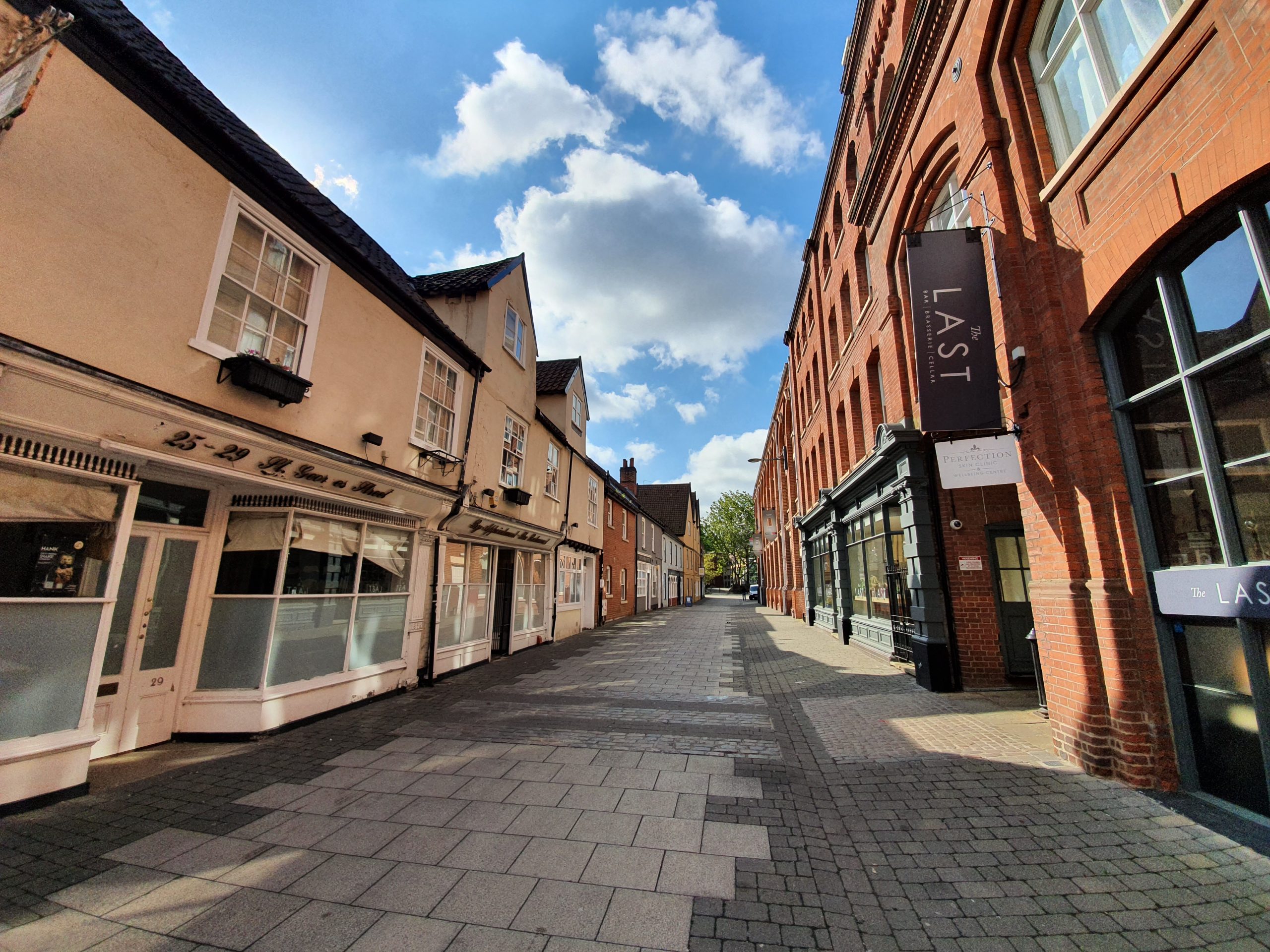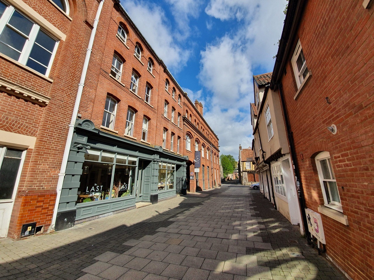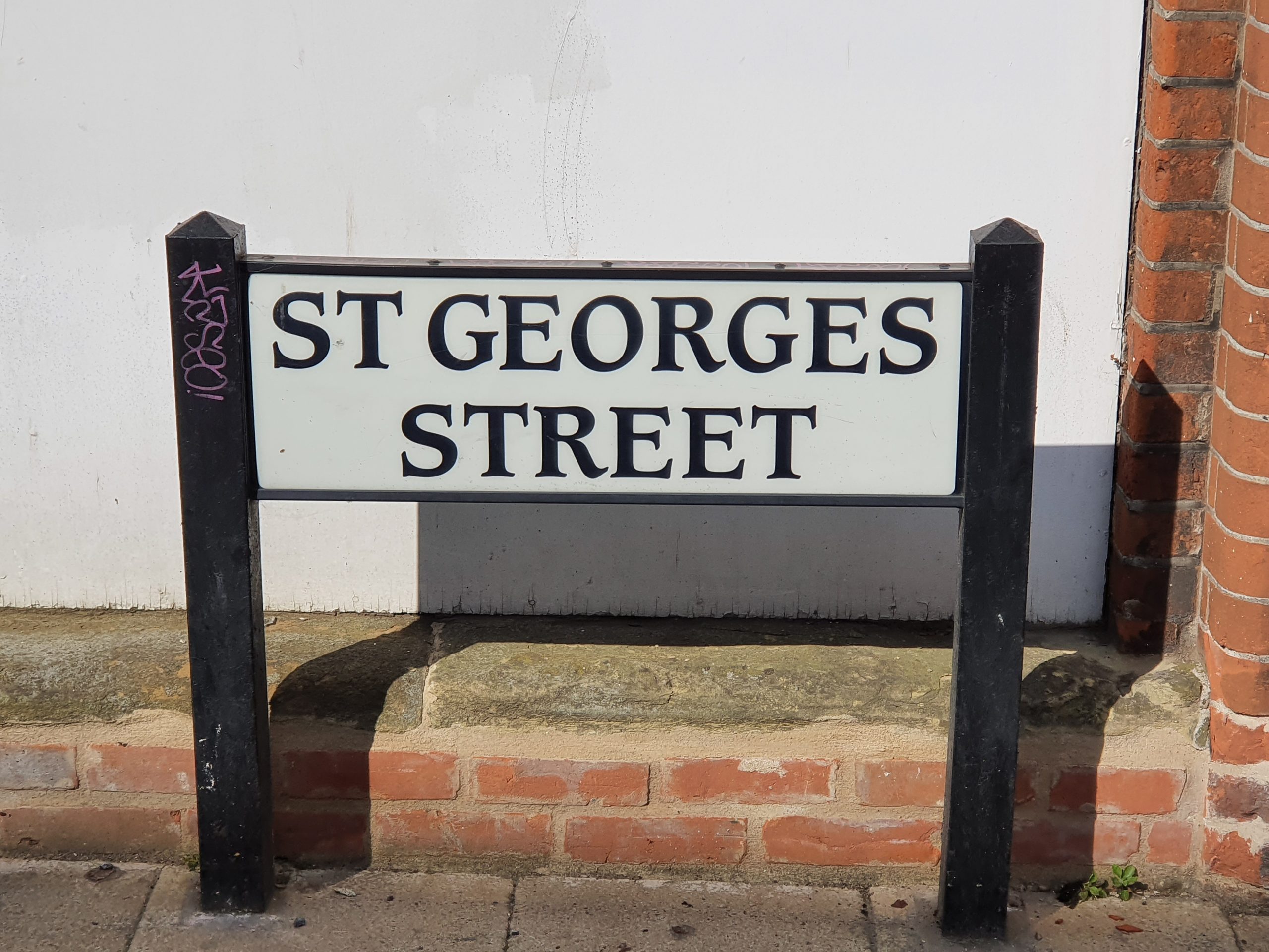 St. George’s Street is a little complex as chunks of it have been renamed over the centuries and the route at the north has changed. And, it once wasn’t called St. George’s Street, it was instead known as Gildengate and it runs along the line of a Viking defensive ditch and bank which was constructed in around 900.