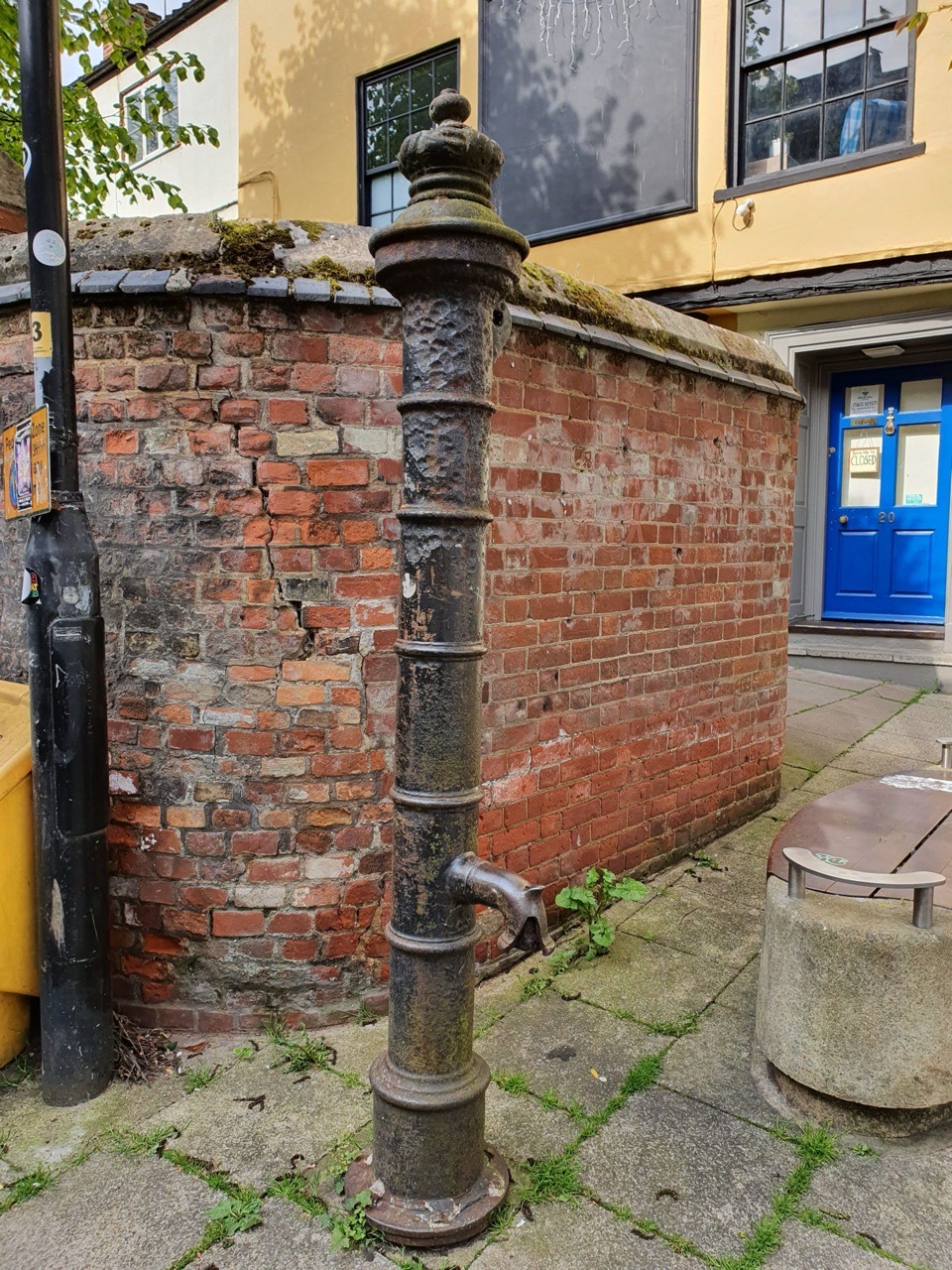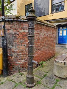 I hadn’t noticed this until today, it’s a water pump from the nineteenth century which is made out of iron and is now missing its handle.