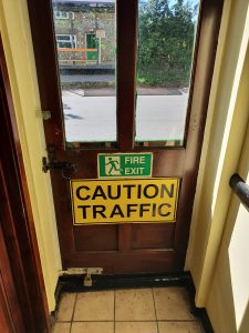 This is not the most conveniently of placed doors, as you could walk out onto a car, but it’s clearly marked.