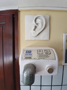 I have no idea about the ear, but the hand-dryer appeared to be from about 1960.