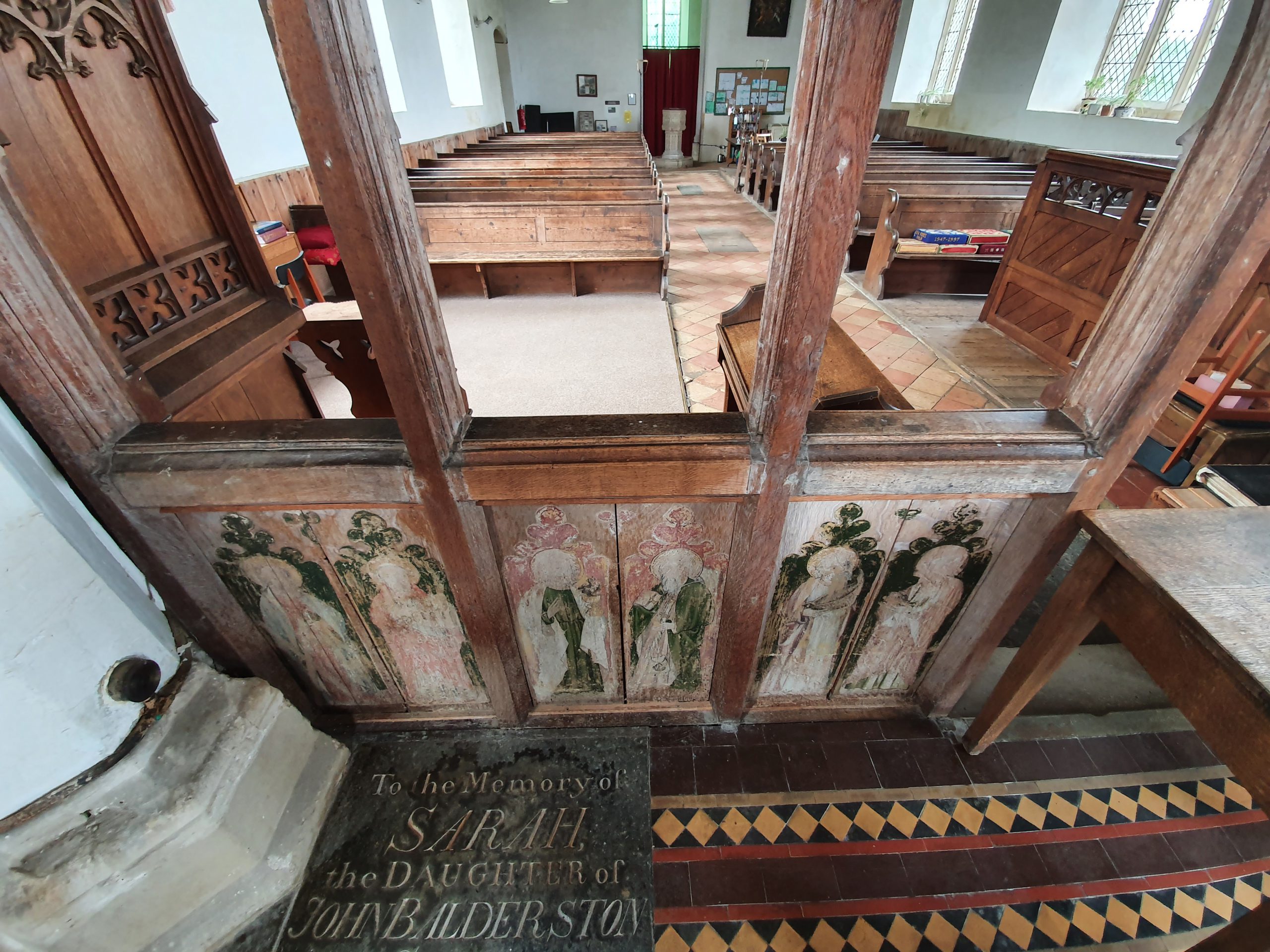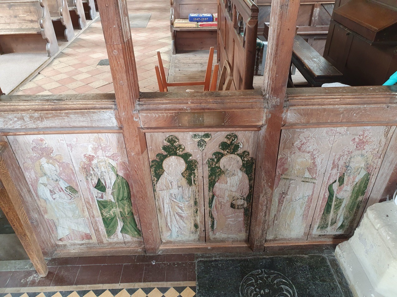The rood screen was mauled about between 1906 and 1913, with the position of the paintings changed and no-one is now quite sure what they were like before the rector had his DIY moment. There’s some beautiful visual imagery here though, it must have inspired at least some of the congregation when it was originally installed.
