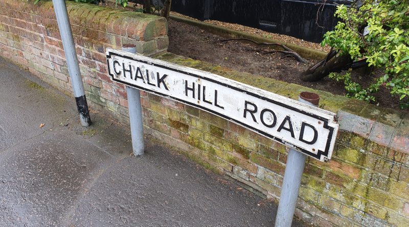 Chalk Hill Road is located roughly between the S and V of Wensum, going from the river and meeting Rosary Road in this 1830 map.
