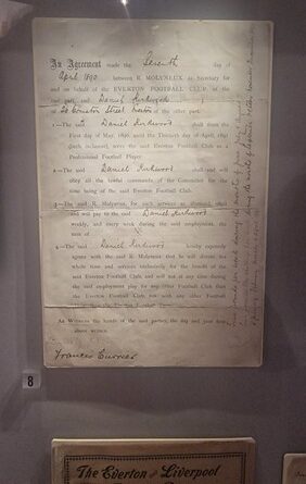 Continuing on from my post about the Museum of Liverpool having the largest collection of Everton memorabilia in the world, this is the contract of Everton player Daniel Kirkwood (1867-1928), dating to 1890. He was to play for the team between 1889 and 1893, later becoming a director of the football club before reaching the giddy heights of Everton’s chairman during the 1909/1910 season.