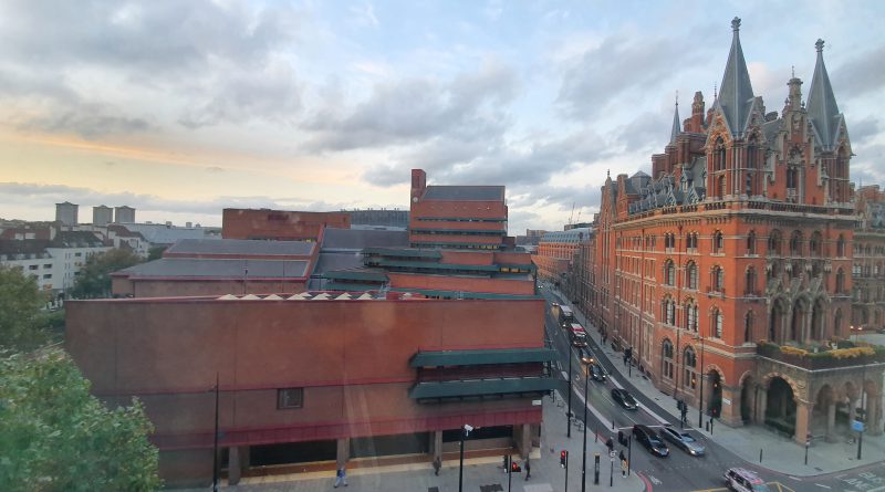 And a rather lovely view from the window. That’s the British Library on the left, reminding me that I haven’t used my Reader’s Card recently. The building on the right is the St. Pancras Renaissance Hotel, the hugely impressive hotel designed by George Gilbert Scott. It’s out of my price range as it’s five-star luxury, but it’s worth noting that British Rail tried to demolish it in the 1960s. Great foresight as ever.