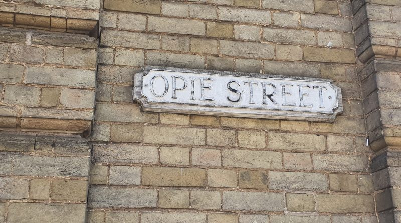 Norwich in the 1880s, with Opie Street not having change much since then. It connects Castle Meadow to London Street. The name of the street did have to be changed, as the legacy of the medieval period was that it was called Gropekuntelane, for reasons of prostitution, so it was changed in the 1860s to be named after Amelia Opie. Opie was a local woman who was a Quaker, a writer and she also involved herself in politics, particularly in the anti-slavery movement.