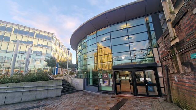 The exterior of Stockport Central Library, located near to the railway station, which is sadly going to be closed soon.