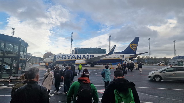 The flight itself was uneventful, I was fortunate that although the flight was busy I had no-one next to me so the whole arrangement was suitably comfortable. I’ve had plenty of trips with Ryanair recently, but although their reputation isn’t always great, I’ve found no issues with them. We got delivered back in the satellite terminal which delayed matters somewhat and because Susanna and Bev dithered we had to wait for them after the border. Ross rushed off to get his train, we didn’t see him again…. I sat at the back of the shuttle and it’s mildly entertaining to watch it go along, like a DLR in reverse.