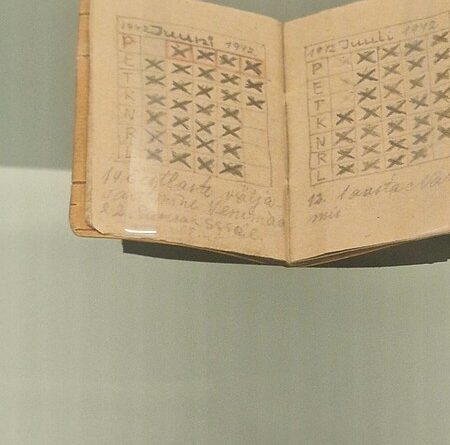 This is a birch bark notebook which “Viktor” crossed out days whilst in exile. The 20 September 1942 was the last time that he crossed a day out, as he sadly died of TB three days later. That’s all the museum says, a hopeless lack of information and half a story.