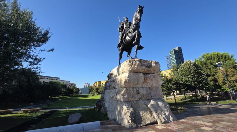 Skanderbeg Square is the beating heart of Tirana, though it feels more like the lungs on a quiet day, expansive, calm and just a little surreal. It’s named after Albania’s national hero, Gjergj Kastrioti Skanderbeg, the 15th-century warrior who spent his life resisting the Ottoman Empire. His statue, naturally, takes centre stage, and it’s one of those heroic bronze figures that makes you feel slightly inadequate about how you’ve been spending your time. More on this statue in the next post though.