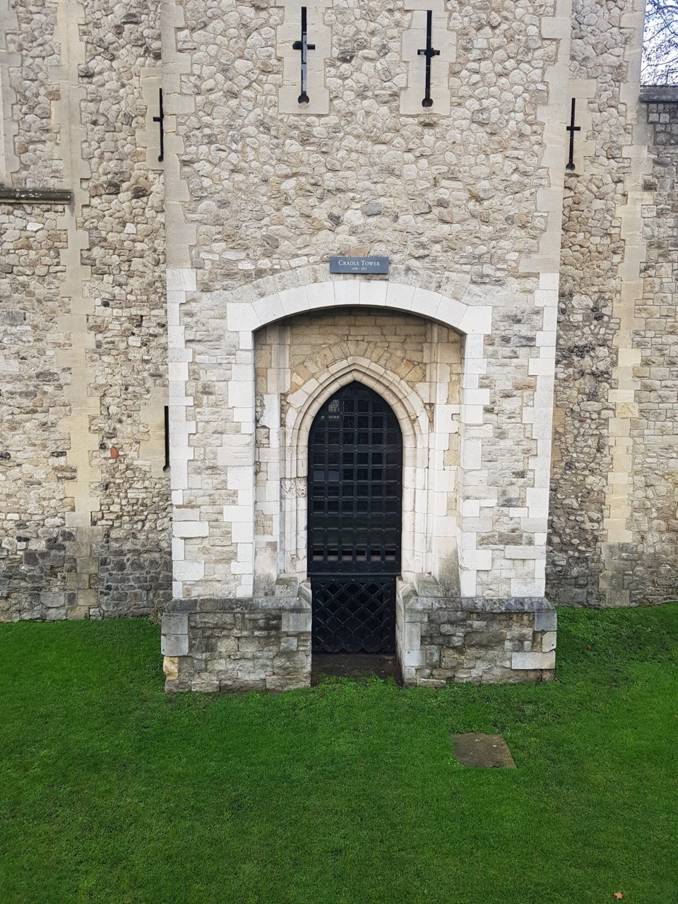The Cradle Tower was built between 1348 and 1355 on the instructions of King Edward III, who wanted it to be used as his private water gate to enter the Tower of London. The exterior of the gate is in the photograph above, with two rooms either side of the entrance, where porters were accommodated. The King used the gate frequently and it was protected by a drawbridge and two portcullises, of which the traces of one are still visible in the stonework.