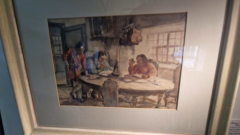 This is the location in the room where the artist thought that Peter the Great might have been sitting. It would have been an interesting time for Burman to paint something like this, Estonia was under effective Soviet control with the puppet leadership of Johannes Vares and they would have liked the thought of Peter the Great having a relevance here.