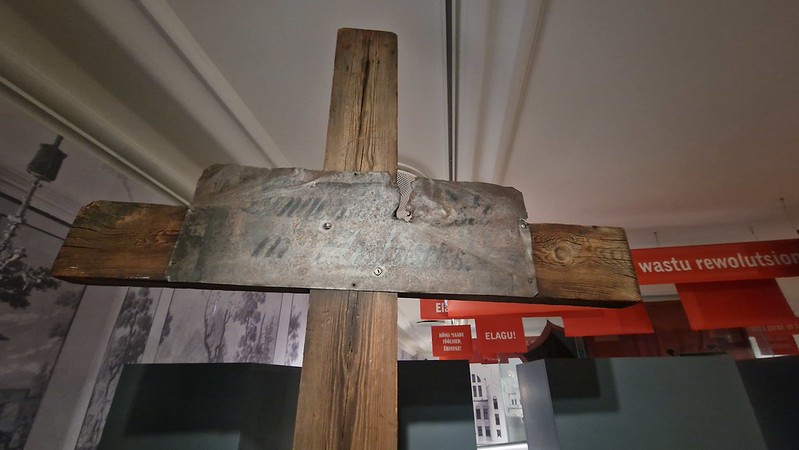 This is the original wooden memorial cross that was erected in New Market (Vabaduse väljak) in Tallinn to commemorate those who died during the demonstrations.