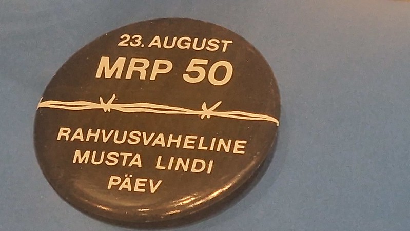 The text mentions the 23 August 1939, with the badge being from 50 years later, the MRP is the same in English. The rest of the text reads “International Black Ribbon Day” which is a day of remembrance for victims of totalitarian regimes. The barbed wire adds a bit more emphasis to the oppression that the people of Estonia found themselves in and the way that Europe was divided. I like little exhibits such as this, they record not just the original bad event, but also how people remembered it. Black Ribbon Day is still a day of remembrance for the evils that took place under Stalinist and Nazi regimes.