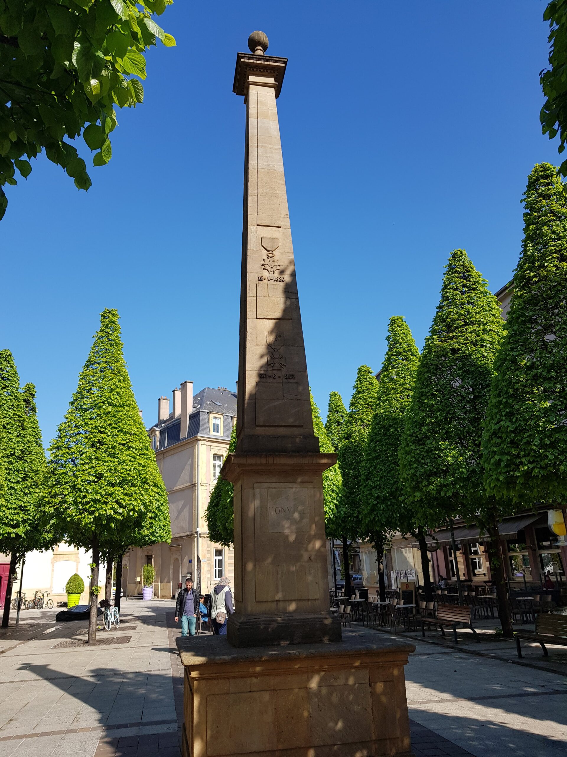 The Altar to the Homeland in Thionville was constructed on 22 September 1796, during the fervour of the French Revolution. There were many of these altars erected during the Revolution, but they were usually built of wood and many were lost under Napoleon’s rule, with this being the last stone one left in the country. It was intended initially to be a focal point for patriotic gatherings, with this one later being relocated to a cemetery and repurposed as a war memorial before being brought back here].