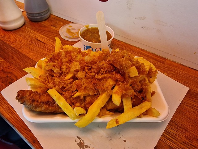 OK, there are no shortage of photo from Lucy’s on Norwich Market on this blog, but this is really rather lovely food. Those meaty butcher sausages, topped with rich curry sauce and heaps of scraps. What a healthy treat! James and I should really go to other locations for lunch more often, but this quality keeps on calling and we’re not very adventurous.