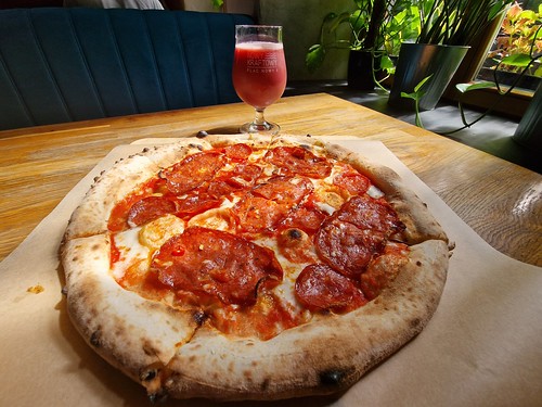 I had wanted the Risfactor Blueberry and Vanilla beer as it was on draft on Ontap, but they said they’d just run out. They had the same beer in a bottle, so that sufficed me, and I accidentally ordered a pizza to go with it. All very delicious. The Risfactor is part of a series of beers from PINTA brewery, who I’ve mentioned on this blog numerous times before as they’re another of my favourites.