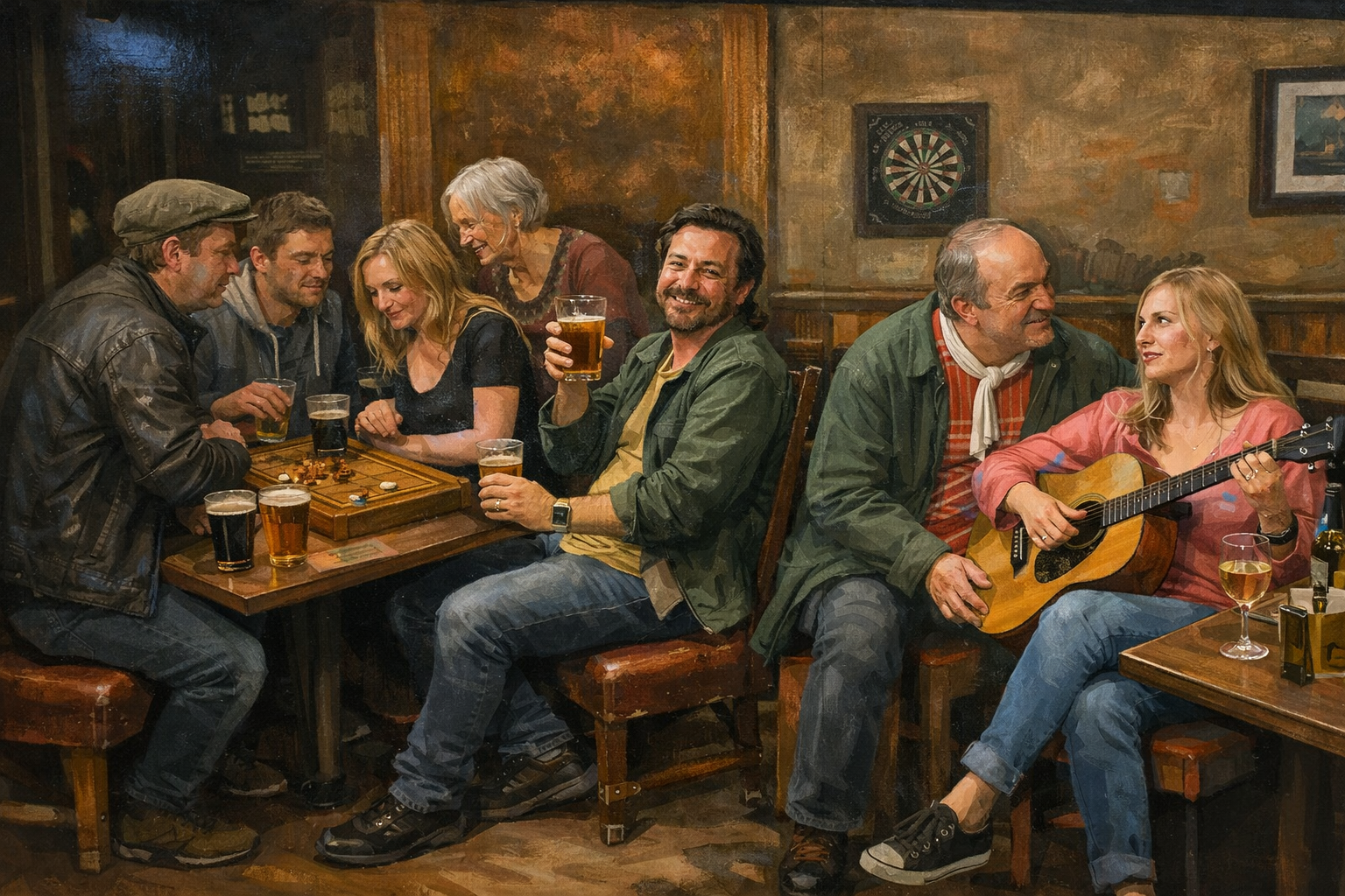 AI comes to the rescue here (and my new caveat of I’m aware of the limitations and challenges of AI, but I like its contribution to knowledge) at modernising the painting. Bringing a guitar wouldn’t go down well in quite a few pubs, but it’s not a scene that would be entirely unrecognisable.
