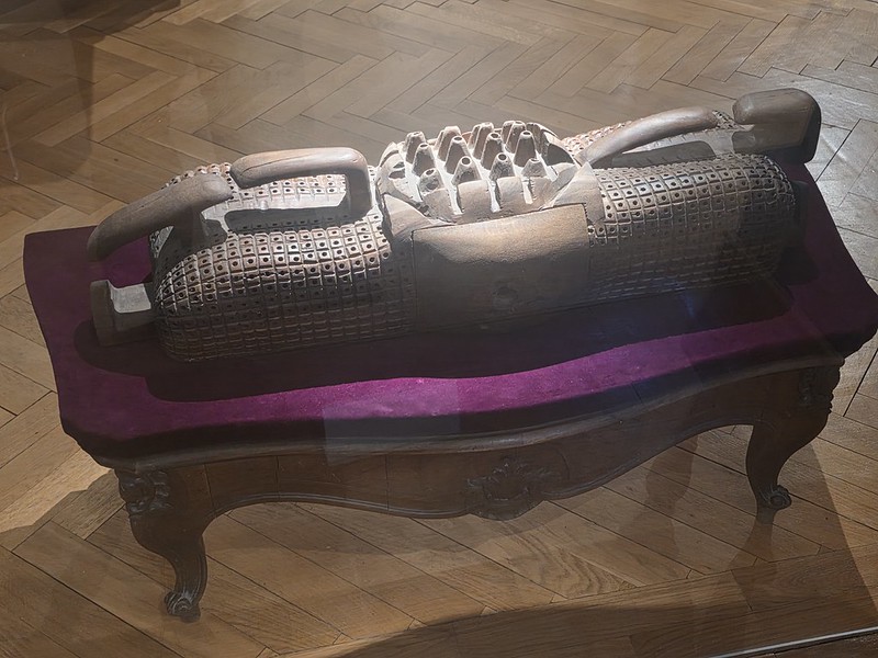 Google Gemini suggested that it’s either a Mukoku slit drum or a Chokwe slit drum, where as ChatGPT goes for a communal grinding stool with spikes or a palm oil extraction press component.