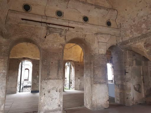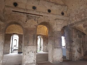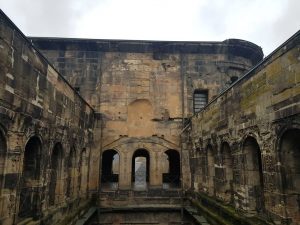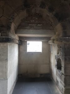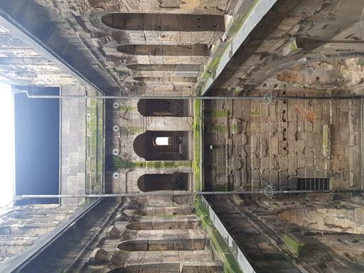 I think this is where the organ used to be in the church. On which point, most of this structure is now open to the elements, even though it is mostly roofed over. None of the windows have glass in and it does all feel like it’s deteriorating, especially as in this room there’s dripping water from above.