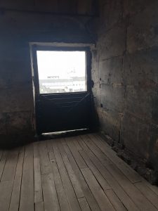What is now the first floor of the building was also the entrance, with banked up earth leading people up to former entrance doors such as this one.