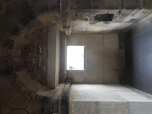 The hermit who had chosen to live in the building was Simeon and when he died the local Bishop, who was known as Poppo, decreed that the gate should become a church. This was a marvellous decision, as it ensured that the building wasn’t demolished and it could continue in use. The photo above is taken looking inwards and the former roof line of the vaulted ceiling of the church can still be seen.