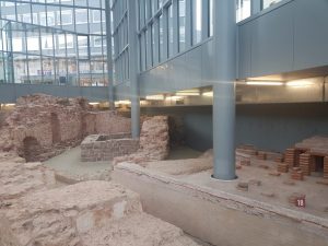 After the monastery, built in the seventeenth century, was suppressed by Napoleon, the whole lot remained underneath what became a market and car park (admittedly it didn’t become a car park until the twentieth century). It was when a lovely new underground car park was being constructed in the 1980s that these foundations were discovered and an archaeological dig then took place to properly excavate the site.