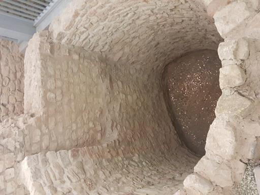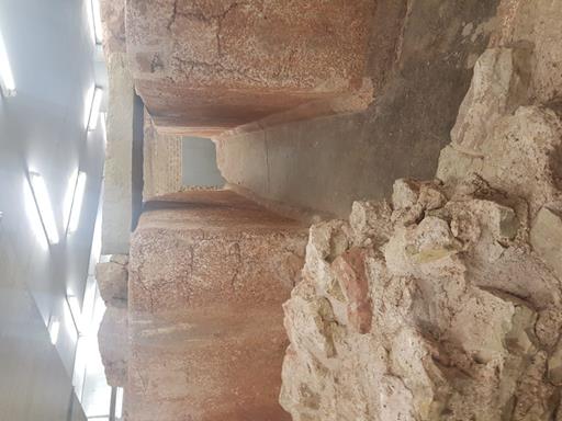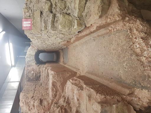 This is the former Roman street (above the culvert) which ran from north to south, and they discovered eleven different layers of development when completing the archaeological dig. The oldest layers dated to the first century AD, whilst the later layers dated to the fourth century AD. The culvert itself was for transporting sewerage.