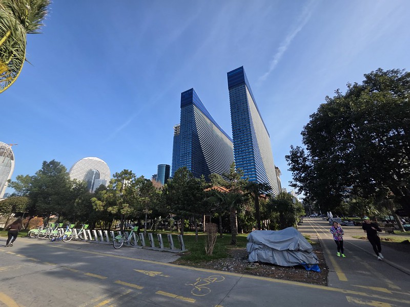 This is the seafront at Batumi and the promenade is long, over three miles long. As the weather was pleasant, very much a contrast with the snow in Erzerum, we thought we’d spend the afternoon meandering along here.